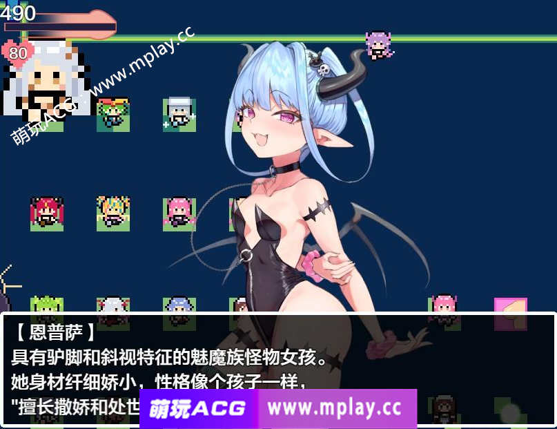 这是一款采用回合制战斗的BF(战斗)RPG。玩家需要抵抗各种怪物娘的必杀技和诱惑,运用性技巧和谈判技巧,继续回到人类的国度的旅程。