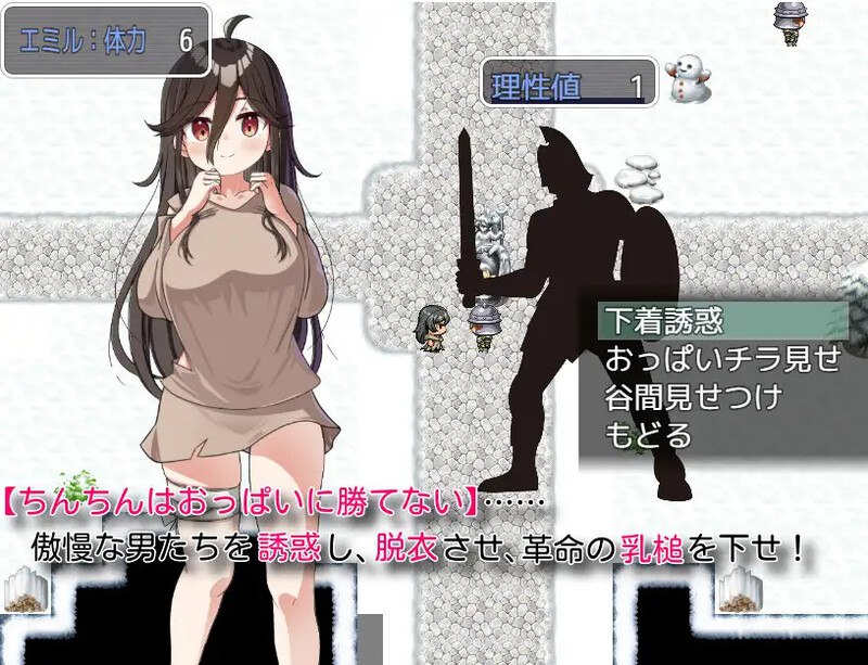 在某个世界中……那是一个充斥着“超级男尊女卑”、仅仅因为是“女性”就受到虐待的世界。生活在这个世界的一个少女“爱蜜尔”一直对这样的世界感到不满。有一天,她偶然从“生活在另一个世界的魔王”那里,得知了这个世界的绝对真理。而那个真理,即是。[阴茎无法战胜乳房]知晓自己的巨乳是让男人堕落的最强武器后,爱蜜尔立志改变这个不合理的世界,发起用乳房颠覆世界的革命的成员——“乳房革命团”。“我……要发起一场‘革命’!要引发‘乳房革命’,颠覆这个世界!”就这样怀揣着革命意志的一个女孩,以J罩杯巨乳为武器,点燃了革命的信号火——
