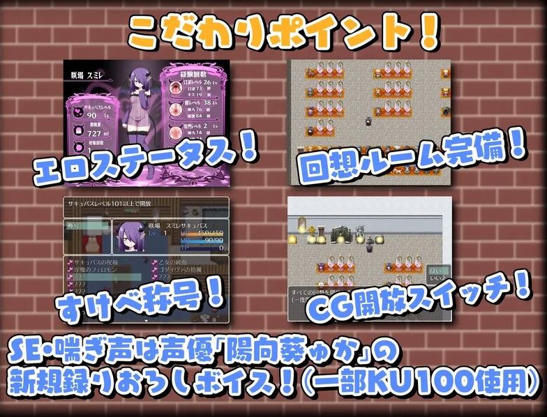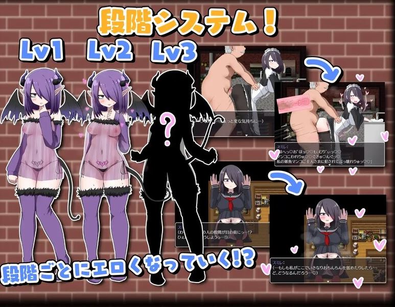 游戏具备RPG特色的换装系统,以及随着经验增长逐渐淫乱的3阶段“魅魔等级”系统。