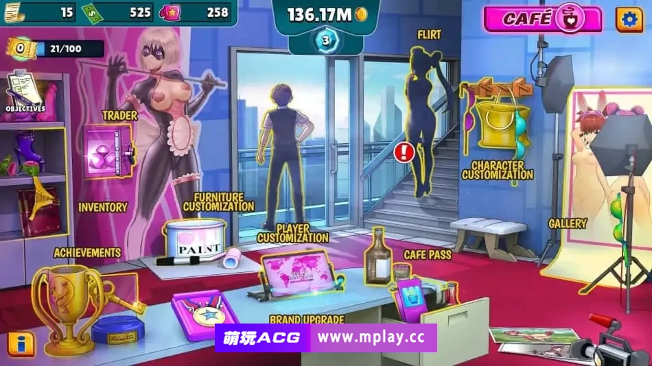 开办你自己的性感咖啡馆,让你的员工充满可爱的动漫女孩。与女孩**,赢得她们的芳心,给她们穿上最可爱的服装……并在各种**场景中与她们一起享受乐趣,即使您不在,您的生意也会不断增长。